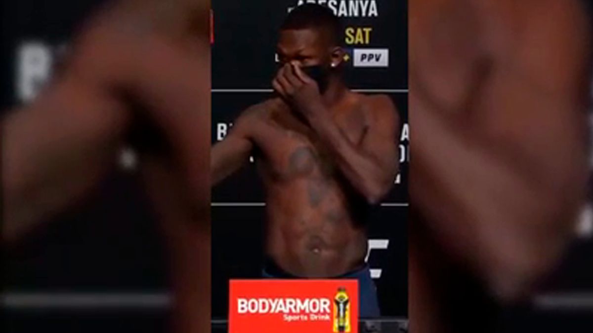 Israel Adesanya Pizza . Israel Adesanya Melakukan Aksi Nyeleneh Dengan Membawa Satu Boks Pizza Kosong Saat Timbang Badan Jelang Ufc 259.