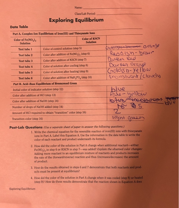 In this video, a chemical change (reaction) occurs when fecl3 solution is poured into kscn solution. Solved: Experiment Le Chatelier's Principle Part I-Thiocya... | Chegg.com